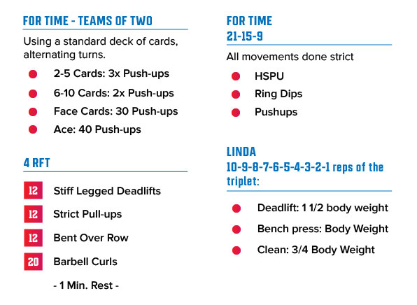 A chipper workout may actually be as direct as it sounds: The overall goal of a chipper workout is to ‘chip away’ at the routine. Traditionally a chipper exercise regimen has anywhere from five to 10 movements, with a high number of reps to be completed. For some, it helps to look at the chipper workout and break out into rounds if needed. For a beginner, 100 pull ups may sound exhausting, however four sets of 25 (with short recovery intervals in between) can help beginners avoid over-fatiguing or injuring themselves..