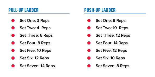 The premise behind the ladder concept, working up or down in the number of reps, is to increase performance past what a person is typically capable of. It goes without saying, but the ability to perform higher value count on movements, leads to more work and overload on your muscles.