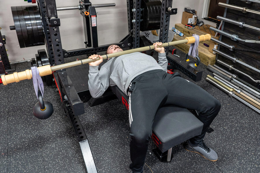 On the other hand if you want to get the most out of the bar bring the bar down to about 1” off the chest and reverse it back up without touching. This will cause an increase in kinetic momentum as it builds up with reps. I would do this once you feel pretty comfortable with the bar due to how challenging it is. Then another way to increase that would be putting a band under the bench to the bar similar to using bands for the dynamic effort method with a barbell.