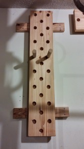 First off these instructions are for one 4′-5′ long Peg Board, if you’d like longer, or would like to make another (say one vertical, one horizontal) like I did you just double the instructions.