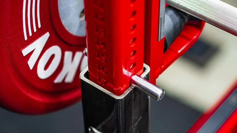 A combo rack needs to be quick and easy to adjust, especially when it’s going to be used in powerlifting meets with varying height and strength lifters.