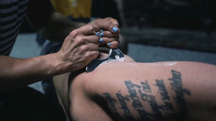 In addition to the SuperNova, Mat employs the use of a tool for Graston work.