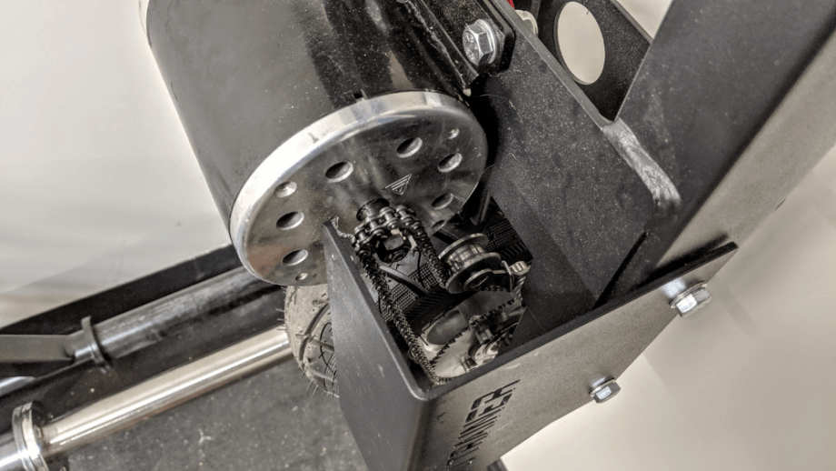 The biggest changes from the original (see our full review of the Original XPO Trainer Sled here) are centered around maintenance issues. On the front wheel there is now a removable chain guard which makes it easier to replace or repair the chain on the front wheel. Since this is where all of the resistance comes from, it is important that it is fixable. There is also now a spring-loaded chain tensioner on the front wheel. On the previous model, it was necessary to move the front wheel back and forth to add tension to the chain. That was resolved by adding the spring-loaded mechanism.