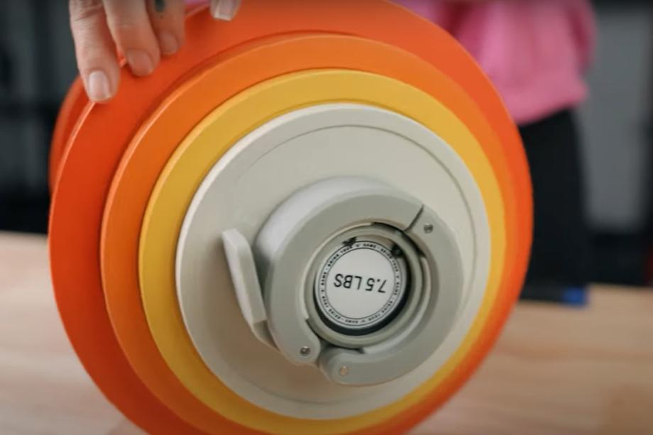 The 7.5-pound dumbbell pair comes with 10-, 5, 2.5-, and 1-pound plates, enclosed on each end by durable nylon collars. With these plates, you can have over 16 weight combinations, according to Aviron.