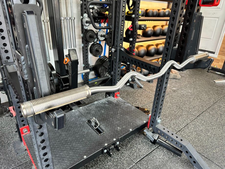 A curl bar is a specialty barbell, meaning it’s not a necessity in a garage gym—but it is nice to have for what it does. Most of what you’d want to consider when purchasing a curl bar is similar to looking at Olympic barbells, but there are a couple unique things to look out for in a curl bar.