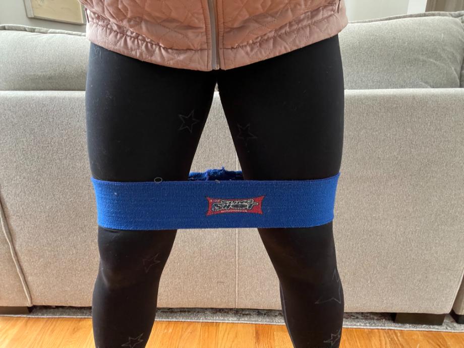 I personally have—and regularly use—the Hip Circle, size large, in blue. My husband and I both use it for warm-up squats, making a bodyweight glute bridge more difficult, and stabilizing the gluteus medius with lateral band walks. We’ve had the same Hip Circle for about six years and just recently it started showing some wear and tear—but still works perfectly! The website mentions that the elastic can ripple, but notes that if you notice this too soon after your purchase, you can contact customer service with a photo of your Hip Circle and proof of purchase.