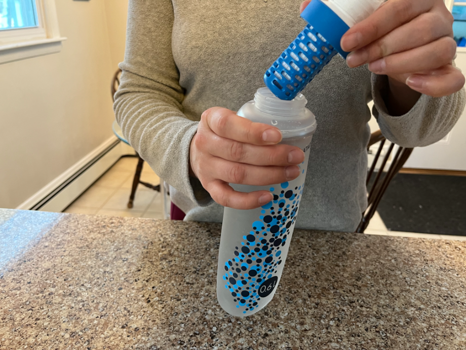 The hand strap is adjustable, but I will admit it kept sliding back to the original setting. It was still easy to hold on to, but as I drank more, the water was sloshing around a little because the strap wasn’t as tight as I would have liked it.