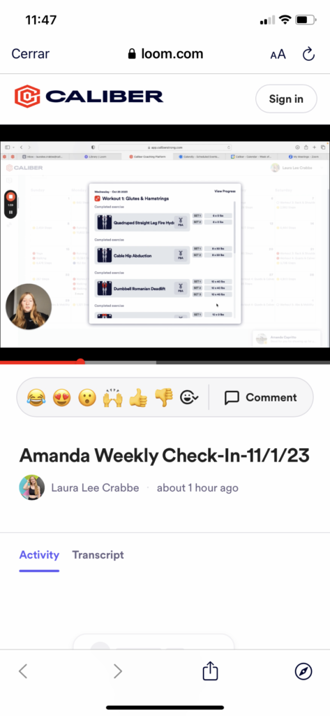 “My coach gives me goals to hit each week regarding weights and reps to ensure I’m progressively overloading. There’s also a feature in the app that lets you record right from within the app, then your trainer can send feedback ASAP on how to correct if needed.”