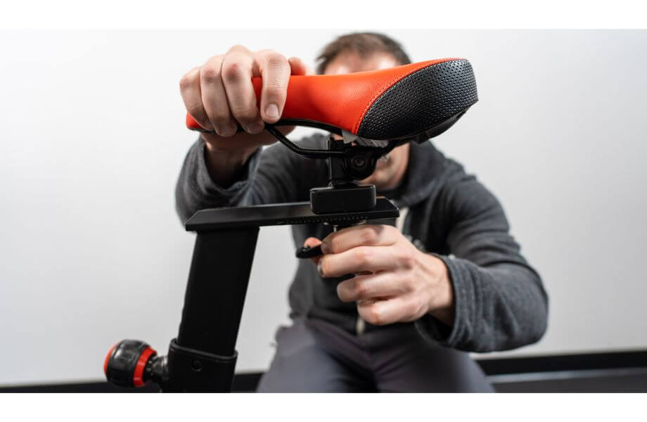 We recommend using the heel method to correctly position the saddle of a stationary bike. It’s straightforward, and you won’t have to whip out a measuring tape at the gym or at home. While you may be able to adjust the fore-aft position on some bikes, it depends on which exercise bike you have. In many cases, you’ll only be moving the height up or down.