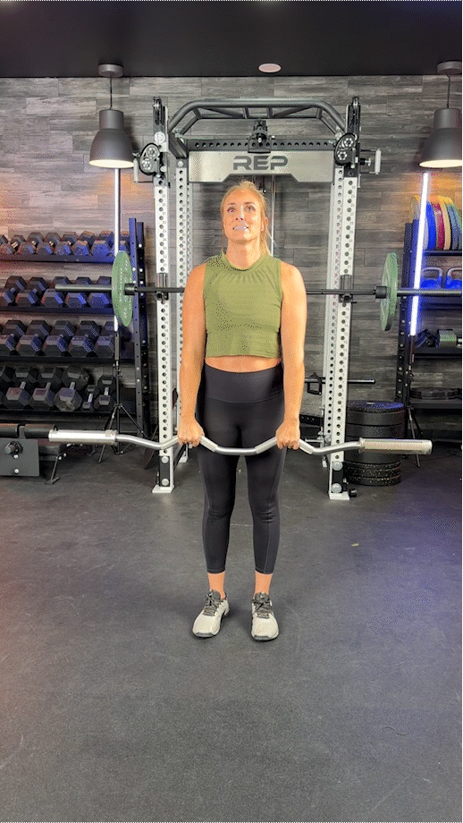 “Strength training generally involves heavier weights, so the EZ curl bar is not ideal for that type of training,” says Kate Meier, CPT, USAW-L1, CF-L1. “For that reason, our curl bar workout will be best for someone who’s looking for hypertrophy, like bodybuilding competitors, or muscular endurance, like all-purpose athletes and CrossFitters.”