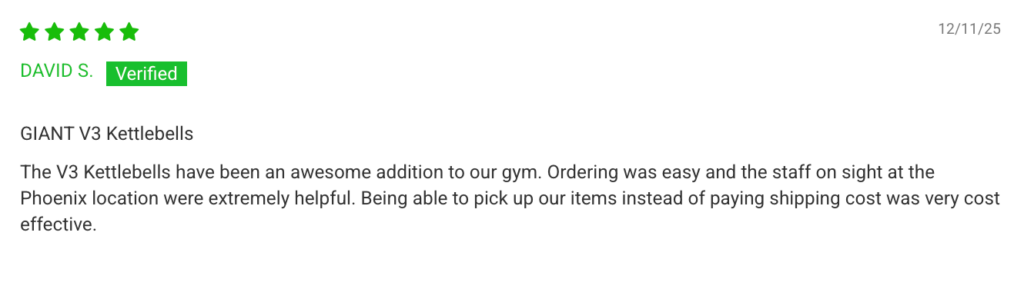 GIANT Lifting earns a strong 4-out-of-5 customer experience score for several reasons. First, we love that these kettlebells come with free shipping. This allows you to keep more money in your pocket (or buy more kettlebells over time).