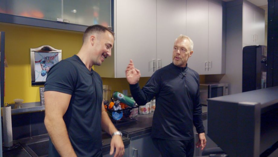 Coop walking through Gunnar Peterson's gym.