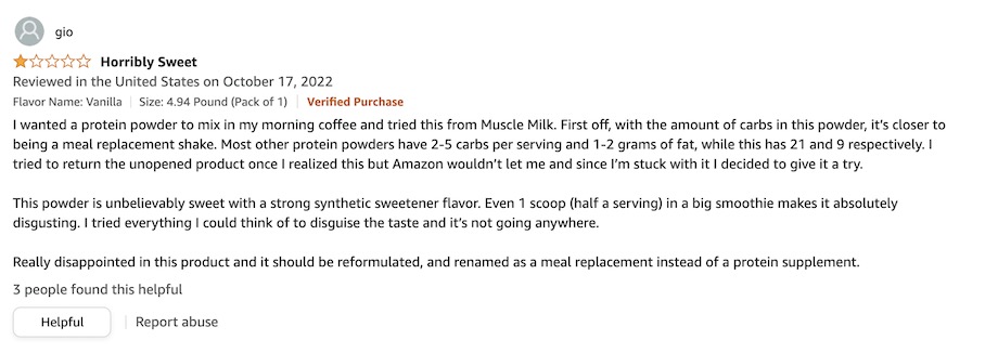 Muscle Milk Genuine protein powder has a whopping 13,300 Amazon reviews at the time of this writing with a 4.5-star average rating.