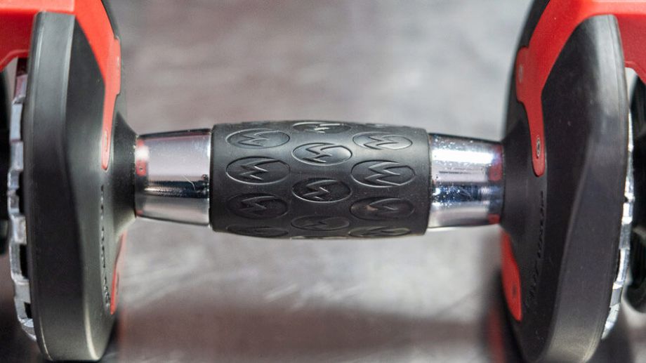 However, the Bowflex 1090s have a “knurled” handle. I use the term loosely as GGR founder Coop says in his video review of the 1090s, “This isn’t knurling.” The grip on the 1090s is more like metal bumps, that might help with grip, but not at the level of a true knurled handle. I’d rather have the rubber grip on these than the slightly-textured metal.
