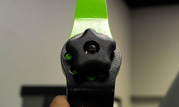 There are a couple of things I’m not a big fan of with the bars though. One is the center attachment point is cut a bit too shallow, not leaving enough material to give me a lot of confidence for the longevity of the bars. The second is that due to the handles having to have the ability to swivel and the use of two carabiners for attachment, the handles hang down pretty low on most lat pulldown machines. This will keep some from getting as much stretch as they’d like, but it may be the only option available if you want your handles to swivel.