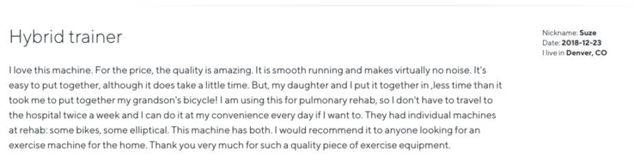On the ProForm website, customers had positive feedback on this hybrid trainer. They appreciated it was easy to assemble and simple to switch between the elliptical and bike during a workout. Customers also praised it for being quiet during use, a great low-impact workout, and a good value overall. Some had trouble activating the console, but the problem was resolved once it connected to iFIT.
