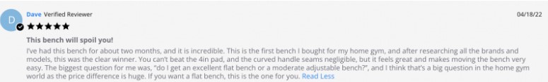 The REP Fitness FB-3000 has a 4.9 average rating with more than 160 reviews, with the lowest rating being a lone three-star review. Most customers were impressed with the value this bench offers.