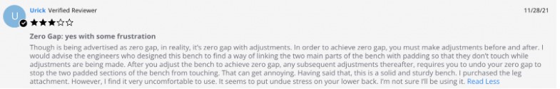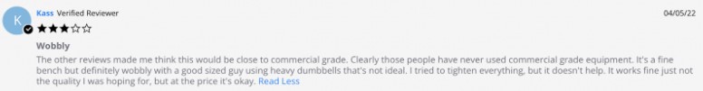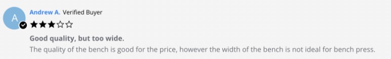 The three-star rating complained of the bench’s width, which is just shy of 12 inches.
