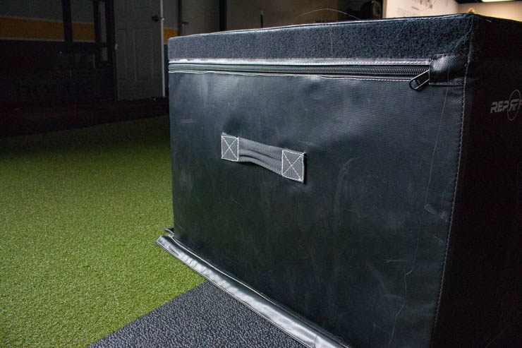 Rep Fitness has constructed their plyo boxes to be able to be flipped upside down and dragged across the floor without being harmed. This is able to be accomplished due to the handles that use cross-stitching to keep them attached to the vinyl. We’ve yanked these boxes all over the gym and the handles are still holding strong.