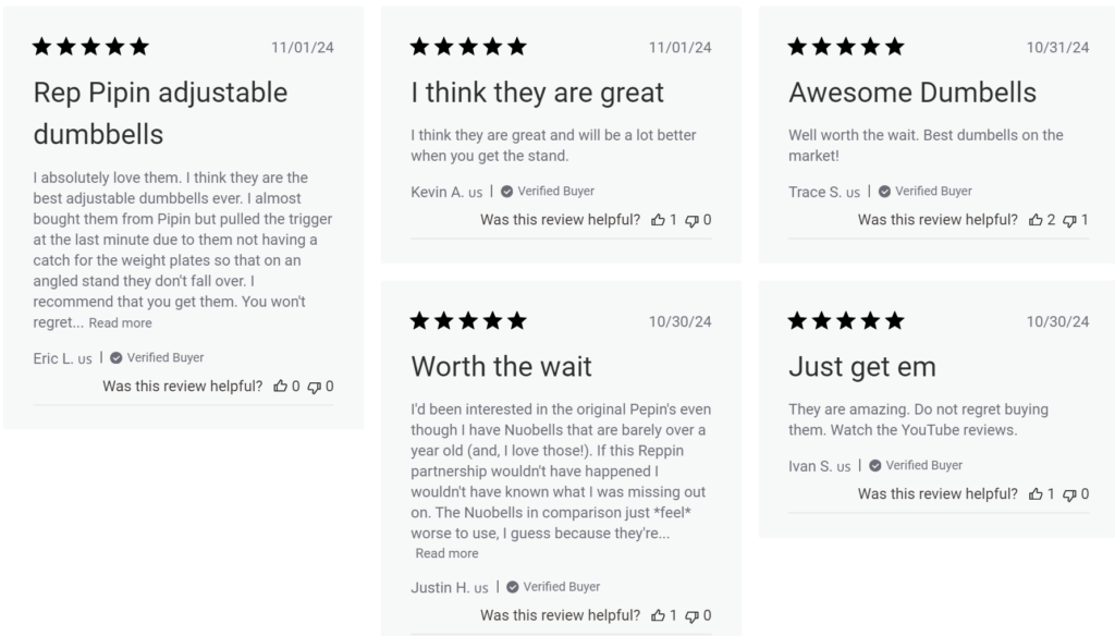 Here at Garage Gym Reviews, we specialize in providing honest, unbiased reviews of equipment we’ve personally tried and tested ourselves. I personally own a pair of NUOBELLs, and I’ve tested multiple pairs of adjustable dumbbells in our testing center, like the Ironmaster dumbbells. I also watched Coop’s full video review, which offers insights I may have missed as I don’t own the original Pépin’s.