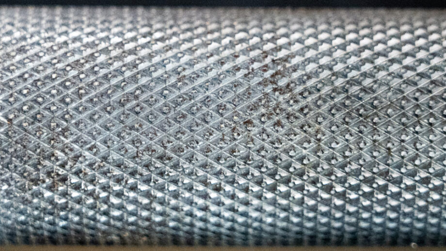 The volcanoes are formed by taking an additional pass during the knurl scoring process, chopping of the peaks of the mountains that were formed during the first couple of passes. A benefit of Rogue’s volcano knurl is that it allows the lifter more contact surface area with the epidermal layer of their hands. Since you’ll be gripping to circular edges of a volcano instead of to just one mountain peak, you have more contact with bar in your hands.