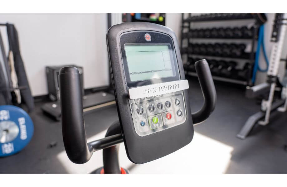 The 230’s display isn’t backlit, which means if you’re in dim conditions, it might be hard to see your program or metrics. And, the screen is covered if you place a device on the media shelf.