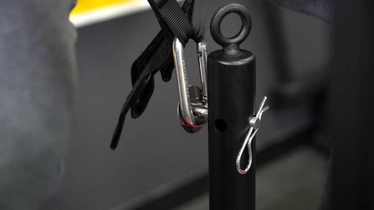 The loading pin also features holes on the side for a hitch pin to attach to that creates an offset load. The founder of the Squatmax-MD claims that the hookup point increases pull on the rear that could be more effective than the top eyebolt and also corrects anterior tilt. I prefer using the top eyebolt but will play with the offset load more and more as I have the unit. It is nice to have the option, however, especially because it doesn’t add any extra cost or hurt the unit in any way.