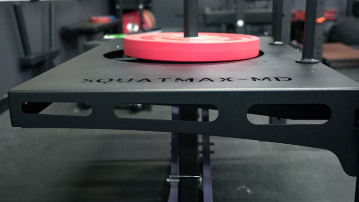 Although we’re big fans of the Squatmax-MD, there are some suggested improvements we’d like to see done in future iterations. The first suggestion is to put UHMW plastic on the J-Hook pieces that connect the platform to the rack. They’re secure without it, but they’re also going to scar up my racks which I hate and I’m sure others do as well. The next improvement is something that’s already being addressed and that is to create a new narrow stance overlay that has tighter tolerances and likely a thicker sheet of metal.
