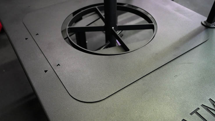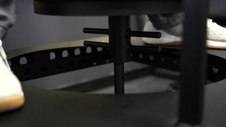 Welded in the middle of the carrier is a rod that sticks up straight through the center cut-out in the platform. This rod is a significant part of the platform that keeps the weights from hitting the cutout in the floor. When I first looked at the Squatmax-MD years ago, I was curious how they prevented the weights from hitting the platform and this is how the simple rod. It’s honestly a pretty genius idea. It’s simple and just works, my favorite kind of invention.