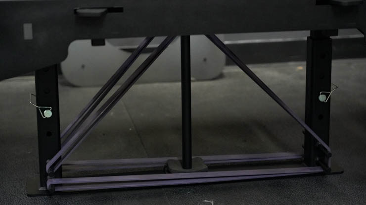 The bottom base crosspiece features band pegs that allow bands to be used rather easily. I plan to just keep the bands attached to the machine at all times and remove them from the loading pin if not using them. That said, You’ll likely want to use bands as it allows the machine to feel smoother and allows more explosive work without the plates jumping unnecessarily.