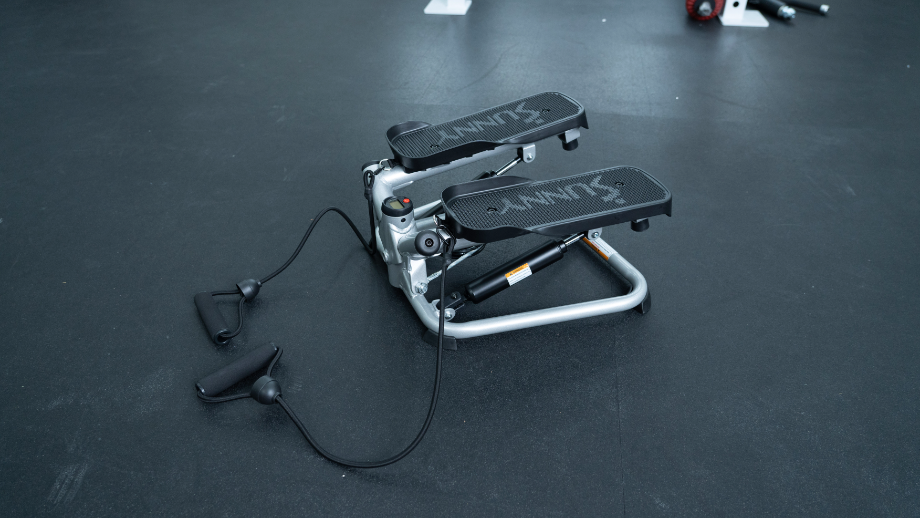 The Sunny Health & Fitness Mini Stair Stepper is a compact machine that offers a solid workout with the potential to work the entire body, thanks to the integrated resistance bands.